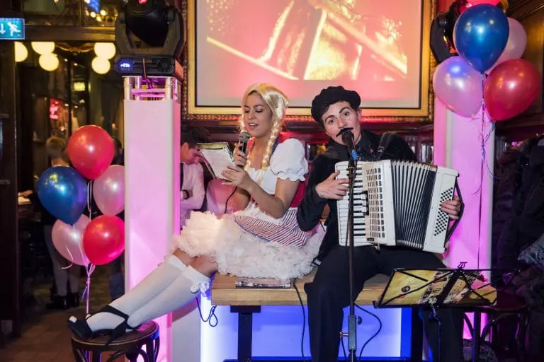 Nadat alle gasten gearriveerd zijn, gaan de accordeonist en zangjuf je voor in het zingen van smartlappen. Van uithaal tot snik, aan jou de keuze in welke volgorde de hartverscheurende tranentrekkers en levensliederen de revue passeren.