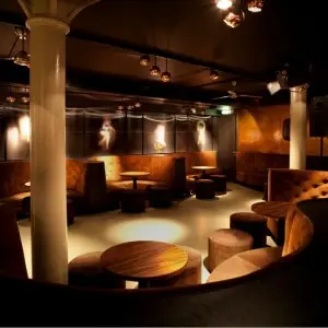 Jimmy Woo houdt van extravagantie maar waardeert ook zijn privacy. Beide aspecten worden weerspiegeld in het ontwerp en de unieke bar lay-out. Een tipje van de sluier: Casper Reinders, met ondersteunend advies van ontwerper Eric Kuster, koos voor kurk op de muren, maanvormige zit-booths, een met bronskleurige epoxyhars overgoten schedel- en bottenbar van kunstenaar John Breed, meerdere ronde DJ-booths én een laboratorium van Bols jenever.